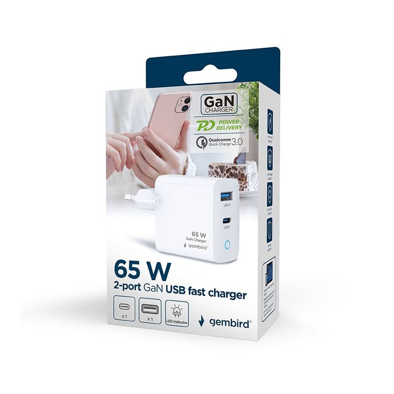Gembird TA-UC-PDQC65L-W-01 mobile device charger Universal White AC Fast charging Indoor